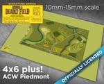 The large scale 25mm - 28mm version (#140B), plays well with 25mm figures using "Across A Deadly Field" at 1 inch = 60-80 yards. It would also work well for 15mm Johnny Reb, Regimental Fire and Fury, and many other regimental ACW rules. The 25mm mat comes printed on a full sized mat (4x6 plus).
