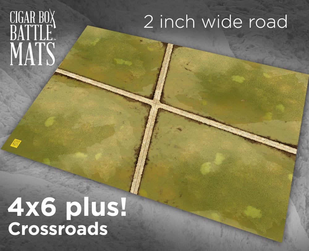 This is a great looking terrain mat that is super versatile and can be used for just about any period. We recommend 6mm, 10mm or 15mm scale with this mat. The roads are approximately 2 inches wide.
