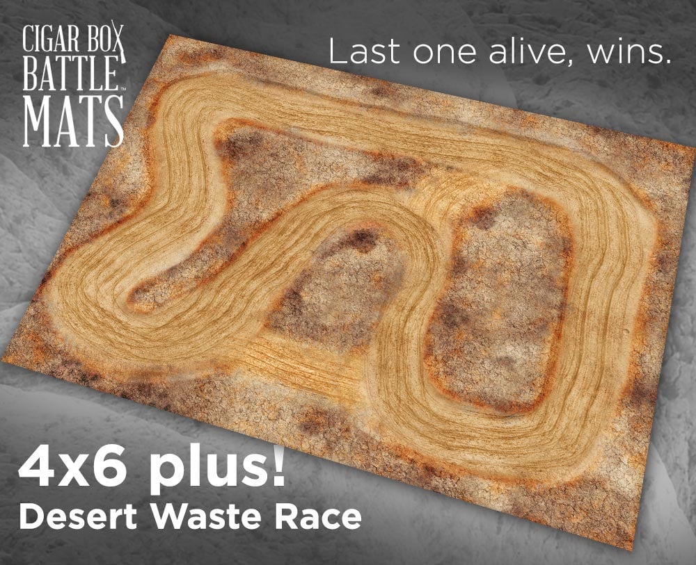 Do you dare race across the Desert Waste Race track? We designed this mat for use with our games of Gaslands, Maximillian, Car Wars, Post-Apocalyptic, and RPG's. What would you use it for?