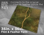The "Flint and Feather Farm" mat was designed in partnership with Crucible Crush and is the official terrain mat for their game "Flint & Feather". The mat features a dark woods design perfect for representing the virgin forests of North America, a trail running the length of the mat and a small field. This mat will connect to the original F&F mat to create a larger scenario.