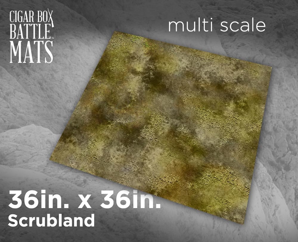 The Scrubland mat is a very versatile terrain mat! It is professionally illustrated and has a lot of "texture" to it. This is a great "base mat" to use for your games. You can use the mat "as is" or layer it with your own roads, tress, buildings and other pieces of terrain!