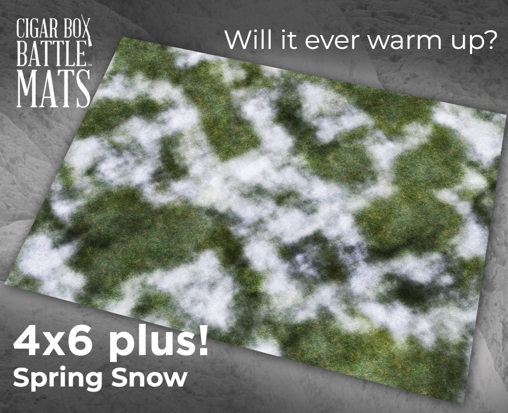 Fight your battles in the Spring Snow! We designed this mat for use with our WW2, WW1, NAP, AWI, SYW troops and legions of space troopers, sci-fi skirmish games, mechs, Victorian Science Fiction , Kings of War, and RPG's. What would you use it for?