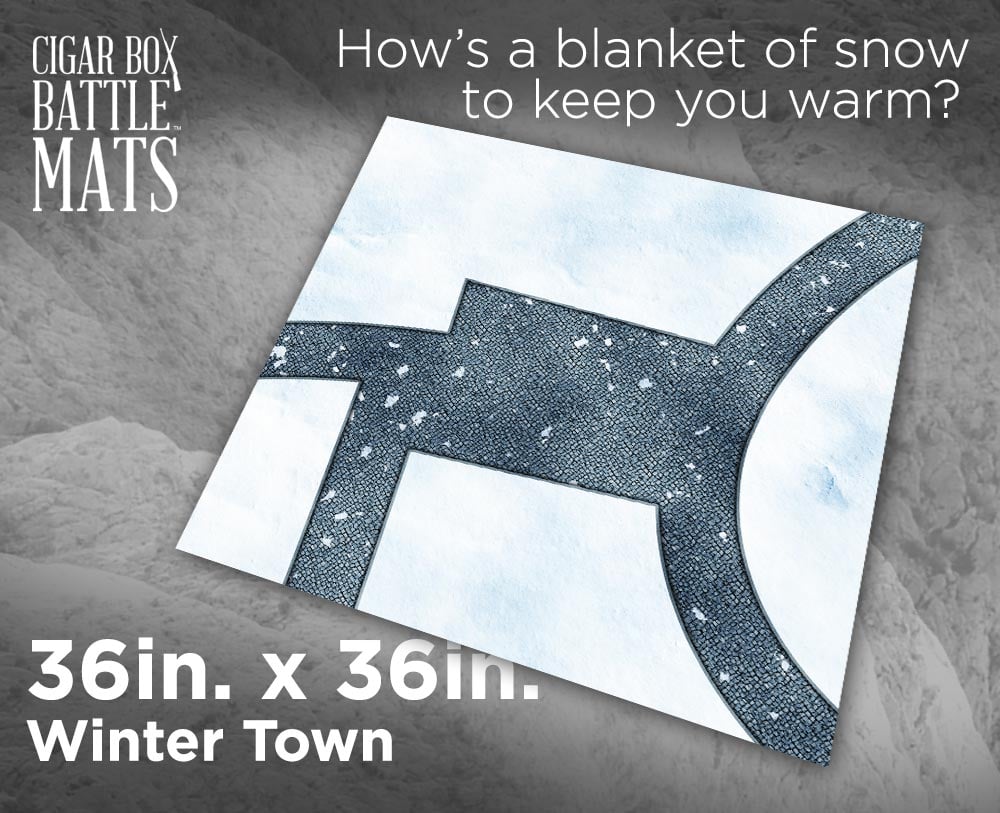 The 3x3 Winter Town mat (#390) works perfect for Frostgrave, or it will transport you back in time and allow you fight out battles from the middle-ages, all the way up to WW2 and beyond. Just add your own period buildings, figures and other terrain features and you will be ready to roll dice in minutes!